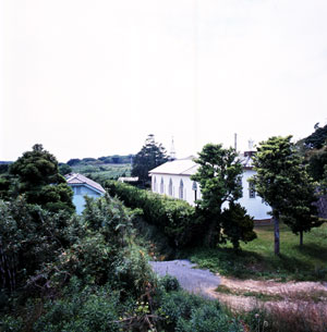 二連アーチの接点下部に特異なペンダントを下げていることである。この手法は伊王島の旧大明寺天主堂(明治13年建築)に同様の手法が用いられており、初期天主堂の一つの類型とも言える手法である。